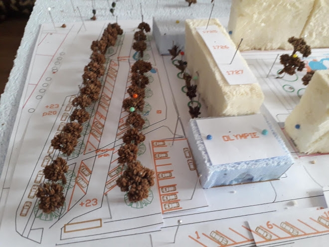 Na základě nápadů a požadavků místních obyvatel ze sídliště M. Horákové jsme zpracovali návrh, jak by mohl vypadat prostor před restaurací Olympie. Místo trpí silným provozem aut na Harantovce, místní by uvítali oddělení silnice velkými stromy, které budou zachytávat prach a hluk a chtěli by navýšit počet parkovacích stání pro sídliště i restauraci.