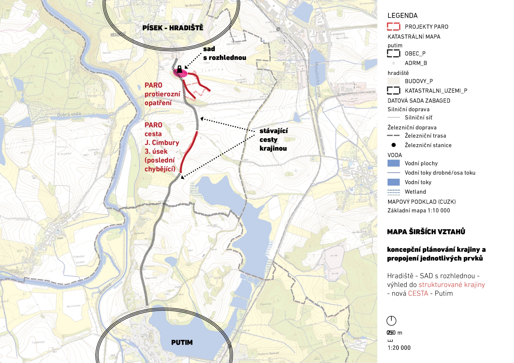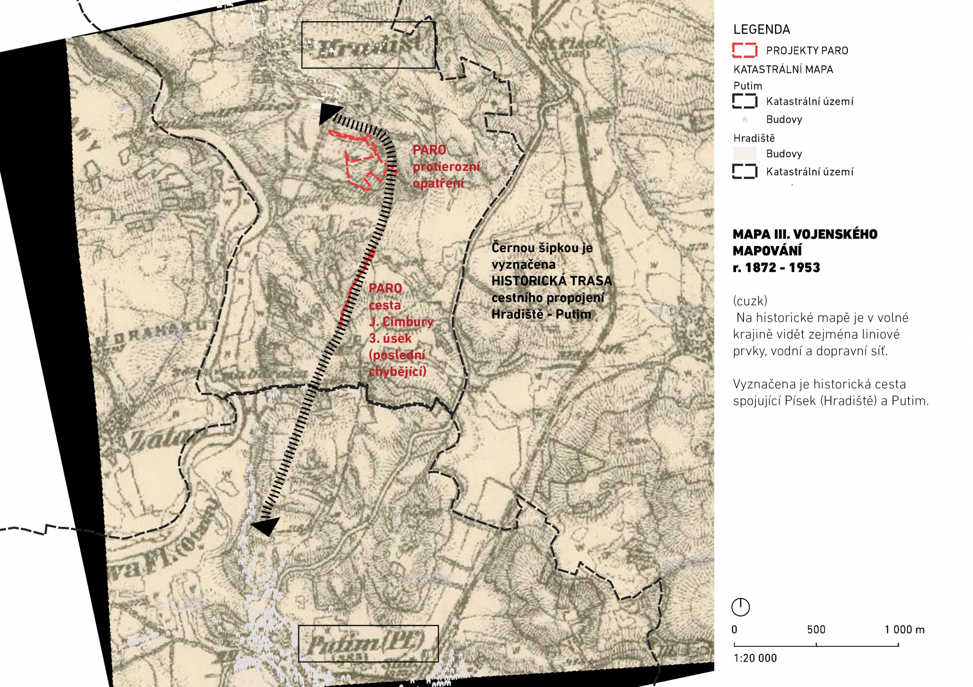 Pro možnost čerpání prostředků z participativního rozpočtu města Písku, navrhujeme záměr realizace pokračování cesty spojující Hradiště s Putimí (viz obrázek 1.)